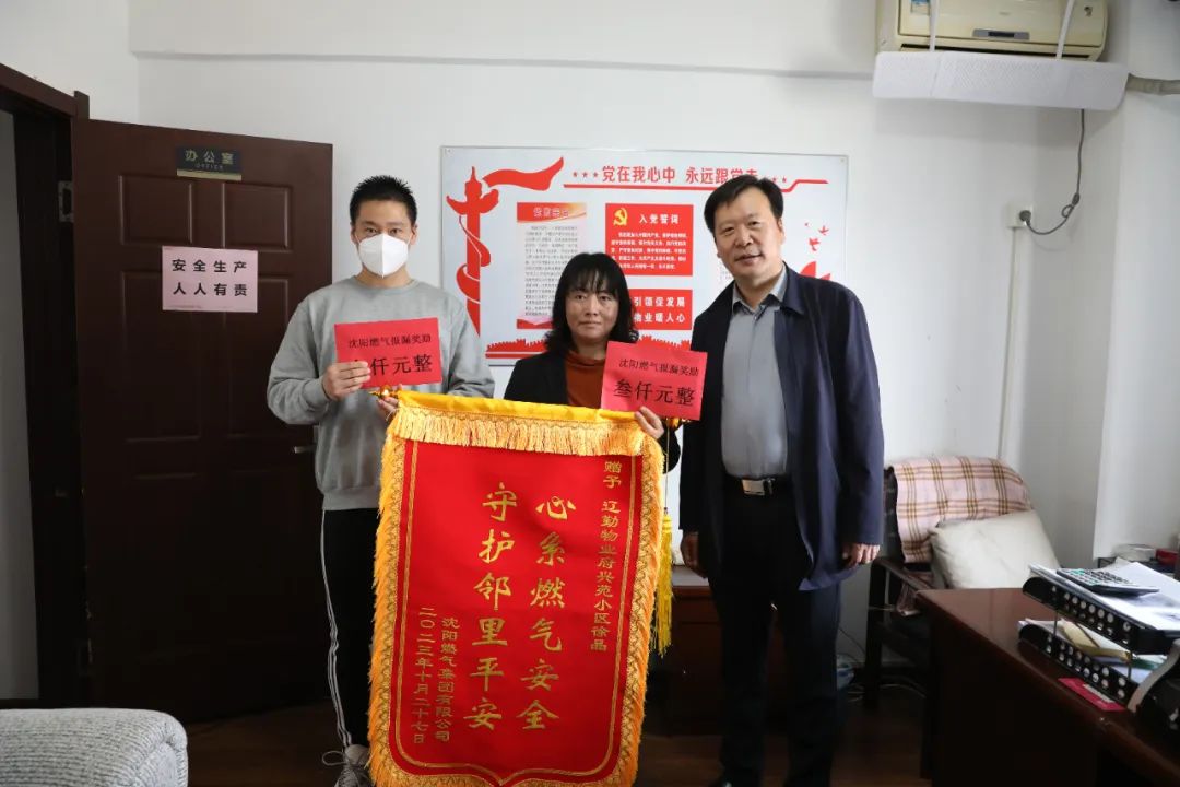 10月29日晚,在皇姑區(qū)府興苑小區(qū)物業(yè)公司辦公室,市民方先生及物業(yè)經(jīng)理徐晶分別獲得沈陽燃氣集團的報漏獎勵。據(jù)悉,今年以來,